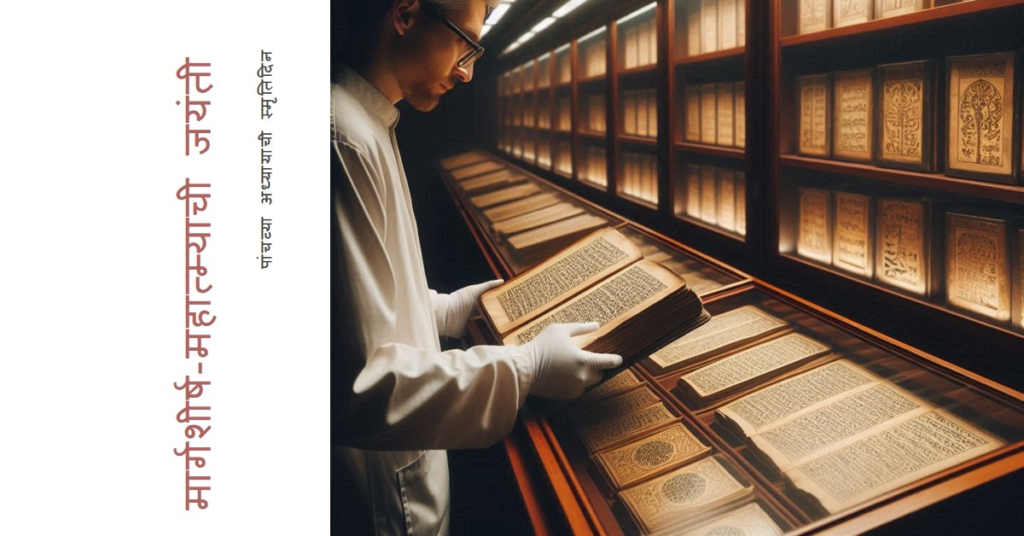 जो मनुष्य मार्गशीर्ष माह में शंख में कच्चे चावल के दाने और कुश घास के साथ जल लेकर (उससे) मुझे स्नान कराता है, उसे सभी तीर्थों के दर्शन का फल प्राप्त होता है।
